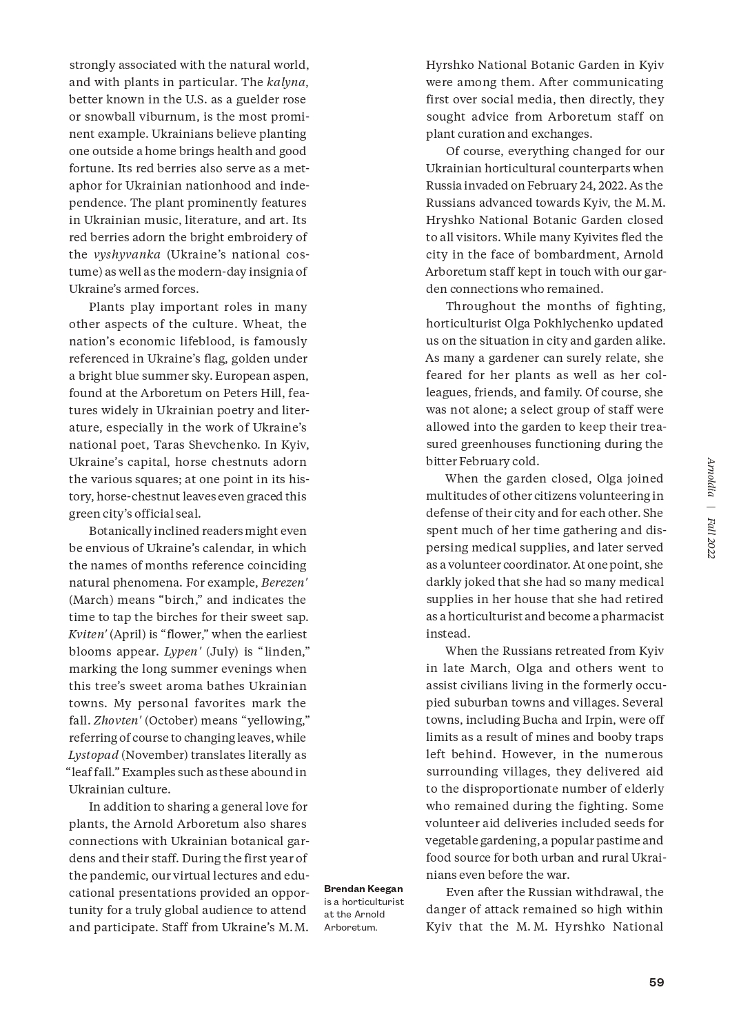 Багато хто з нас пам’ятає Брендана Кігана, волонтера Корпусу Миру, вихідця з американського штату Теннессі. Співпраця з ним тривала протягом 2010-2012 років. Повернувшись додому Брендан продовжував цікавитись життям школи, тепер уже ліцею, та громади. А з початком повномасштабного вторгнення росії до України Брендан одразу ж відгукнувся на події, співчував, переживав, пропонував допомогу, у себе вдома об’єднував американців для підтримки українських захисників, надсилав кошти на рахунки для Збройних Сил України. А ще написав чудову статтю Plants, Identity, and War in Ukraine, у якій передав свої враження від перебування у нашому містечку та гіркі відчуття від того, що триває зараз в Україні.