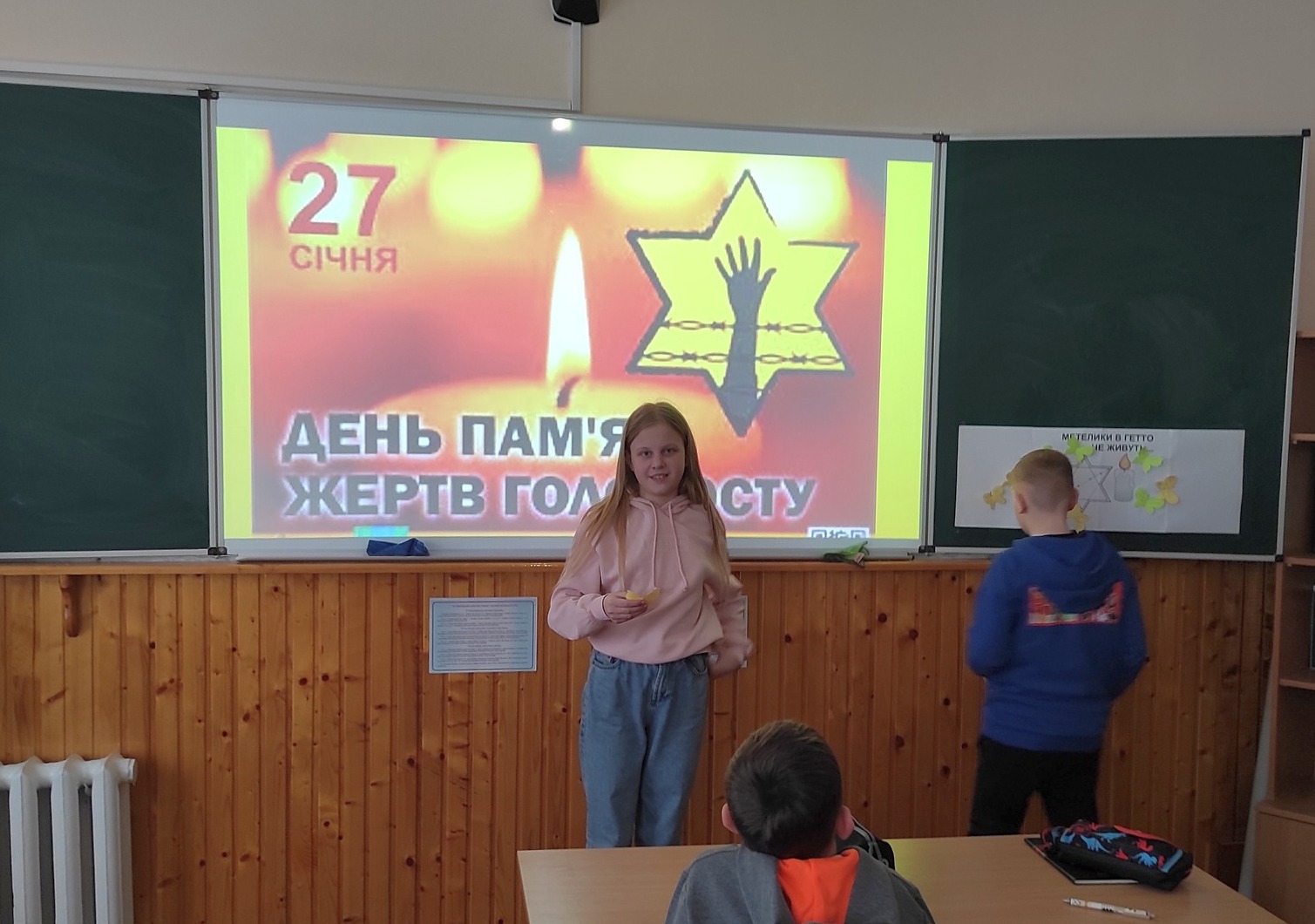 П’ятикласники дізналися, що означає «Голокост», передумови та події цього періоду. Символом Голокосту є метелики. Учні на своїх метеликах пам’яті написали побажання у майбутнє.