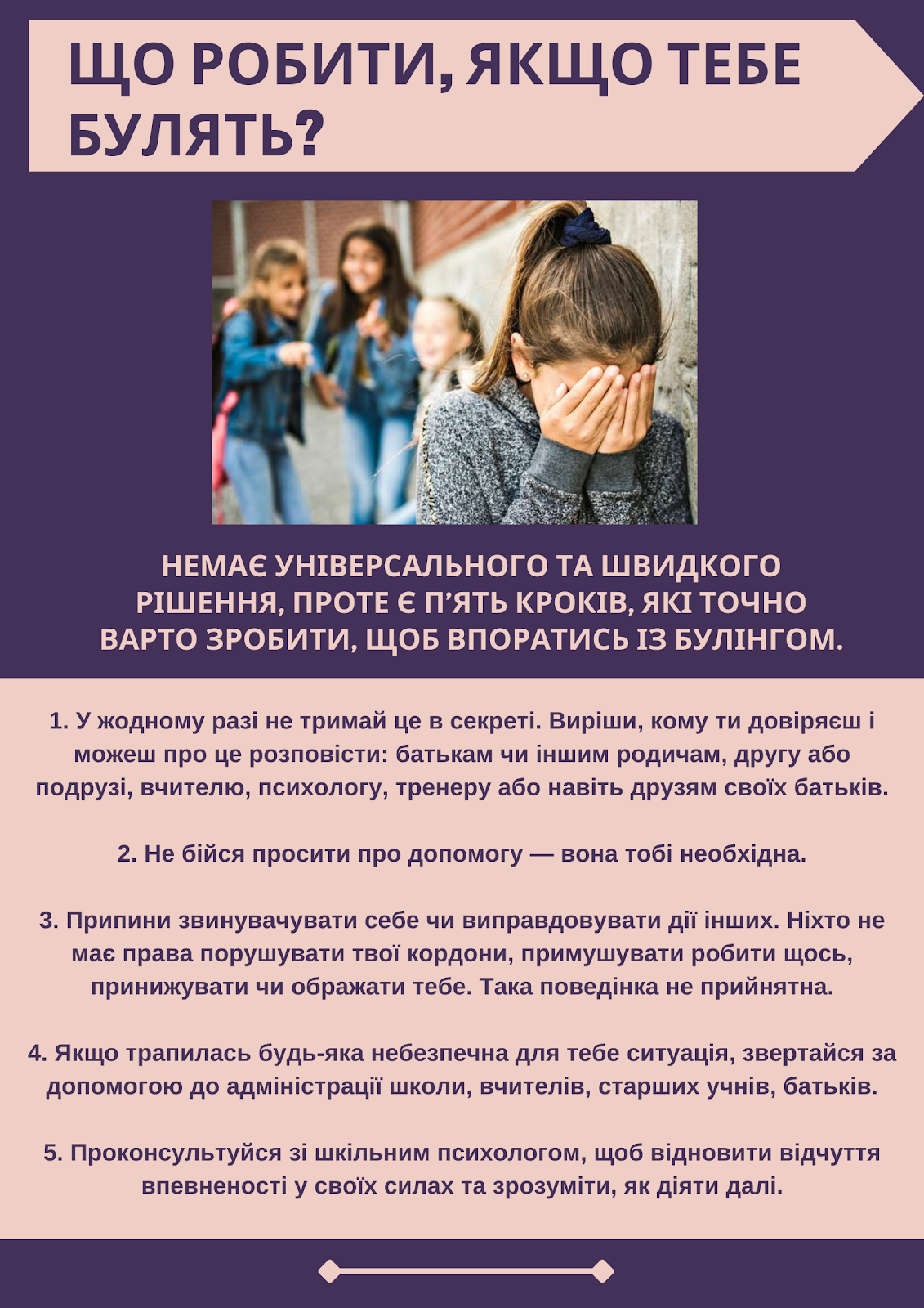 За даними дослідження UNICEF Україна за 2017 рік, 67% дітей стикалися з булінгом (були жертвою або свідком), а 40% постраждалих від цькування взагалі ні з ким не ділилися проблемою і не зверталися за допомогою. 25% – говорили про це не з дорослими (з другом чи братом/сестрою). З тих, хто мовчать – 40% соромляться про це говорити, а 22% вважають,